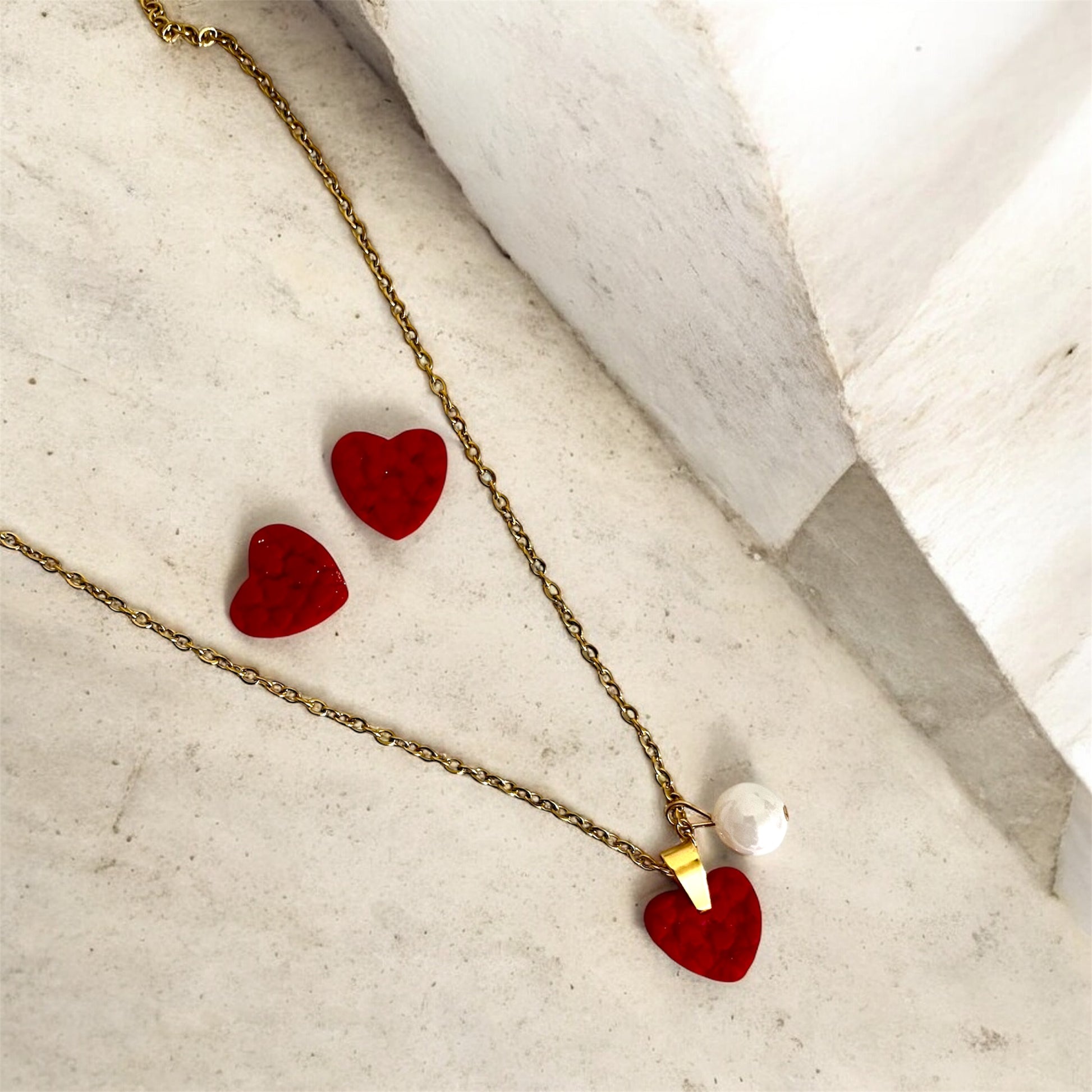 Celebrate love in style with this exquisite handmade jewelry set, designed for those special romantic moments. Featuring delicate heart-shaped studs paired with an elegant necklace adorned with a charming heart pendant and lustrous pearl, this collection captures timeless elegance. Perfect for Valentine's Day, anniversaries, or whenever you want to embrace your romantic side. Each piece is crafted with care, making it an ideal gift for someone special or a meaningful treat for yourself.